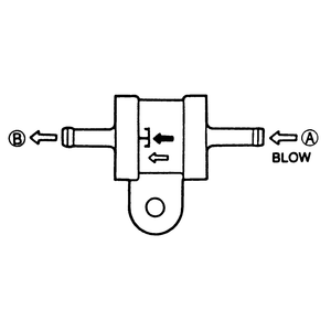 - Remove the check valve and blow air through port B and