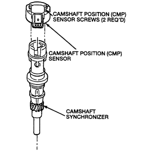 The CMP sensor provides the camshaft position information, called the CMP signal, which is used by the Powertrain Control Module (PCM) for fuel synchronization.