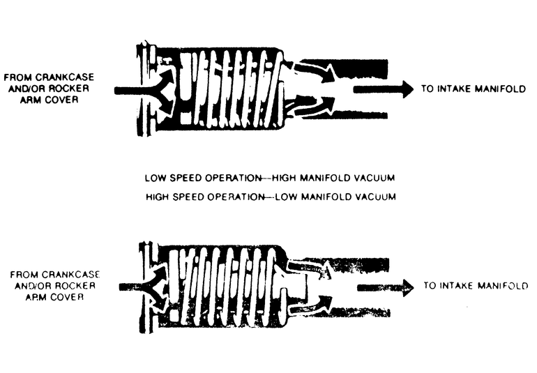 | Fig. 1: Cutaway view of the PCV valve and its operation |
