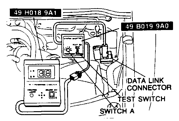 - Connect System Selector Tool 49-B019-9A0 to the data link connector, located