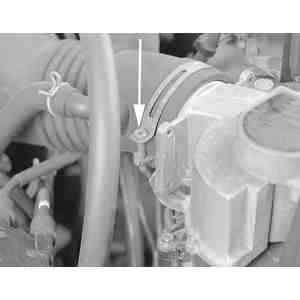 | Fig. 1: Loosen the air inlet duct hose clamp at the volume