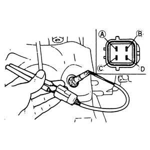 - Connect a voltmeter between the HO2S connector terminals A and B on the