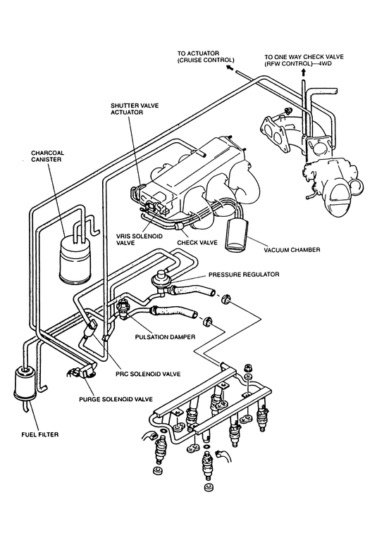 Fig. 5: Vacuum hose routing for 1994 — 95 MPV models equipped with the 2.6L engine |