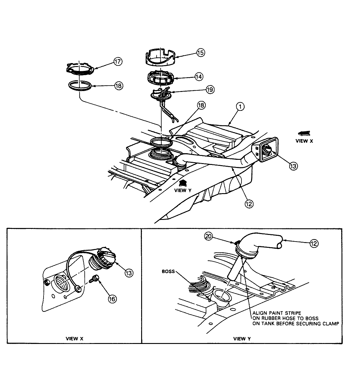 - Disconnect the fuel fill and vent hoses connecting the filler pipe to the
