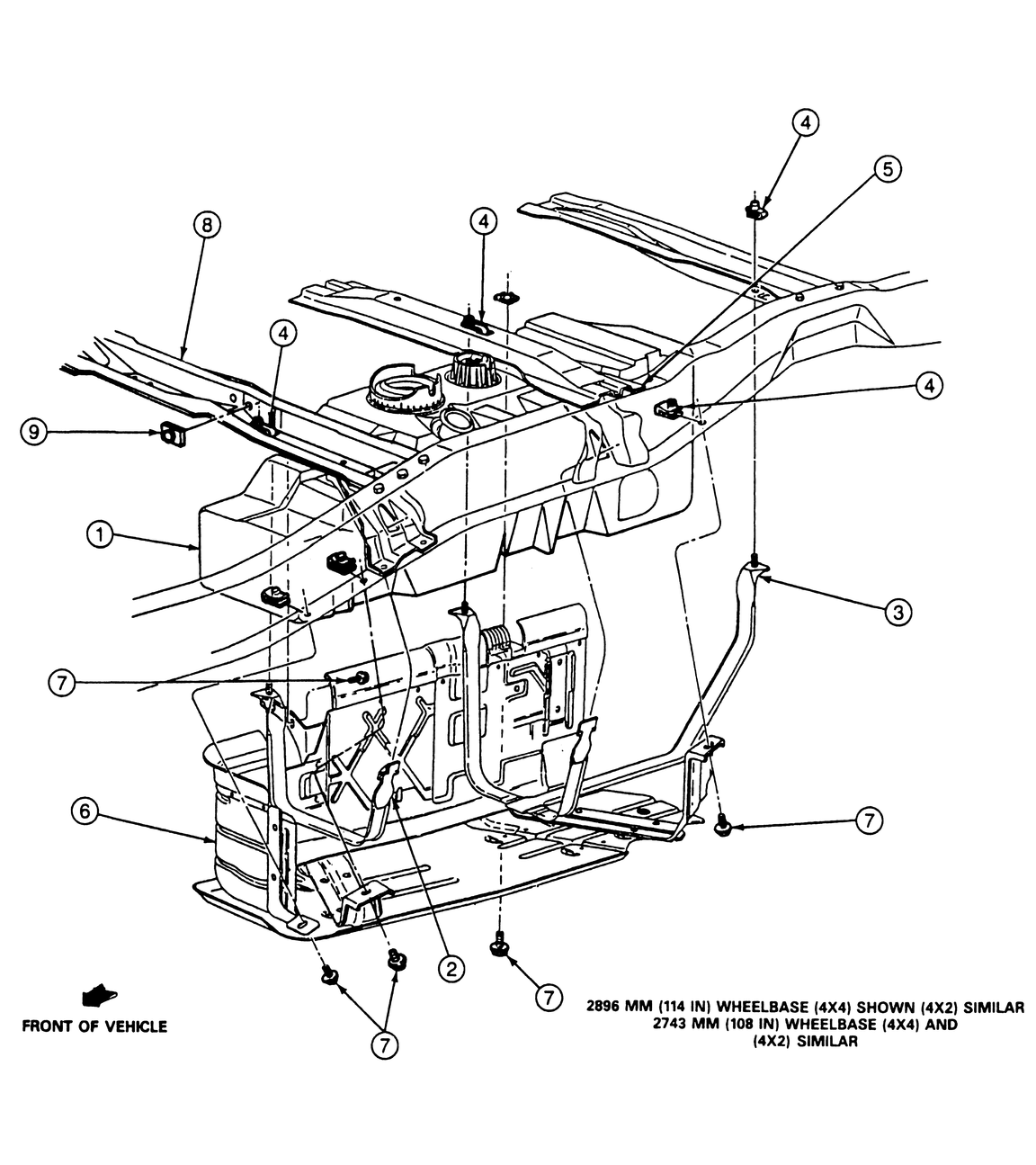 NOTE: On B Series Pick-up vehicles, the rear fuel tank