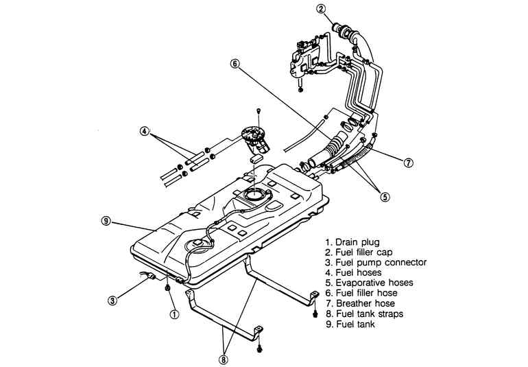- Disconnect the fuel lines, evaporative hoses, breather hose and fuel filler
