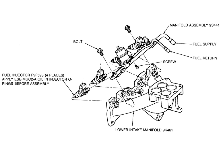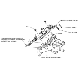 | Fig. 1: Exploded view of the 2.3L engine fuel supply