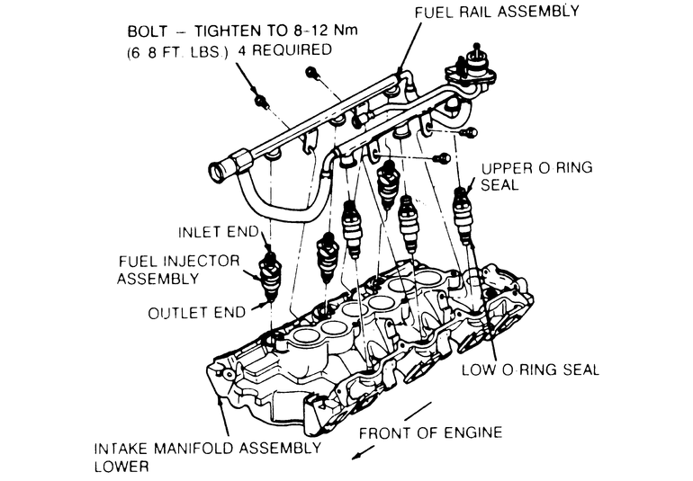 - Install the fuel rail. Connect the vacuum and fuel hoses.