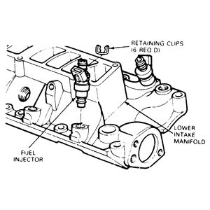 - Remove lock rings securing injectors to fuel rail receiver cups. Pull injectors