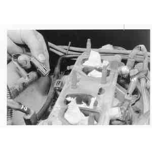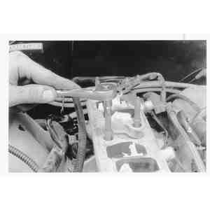 - Label and disconnect the vacuum and fuel hoses from the fuel rail.