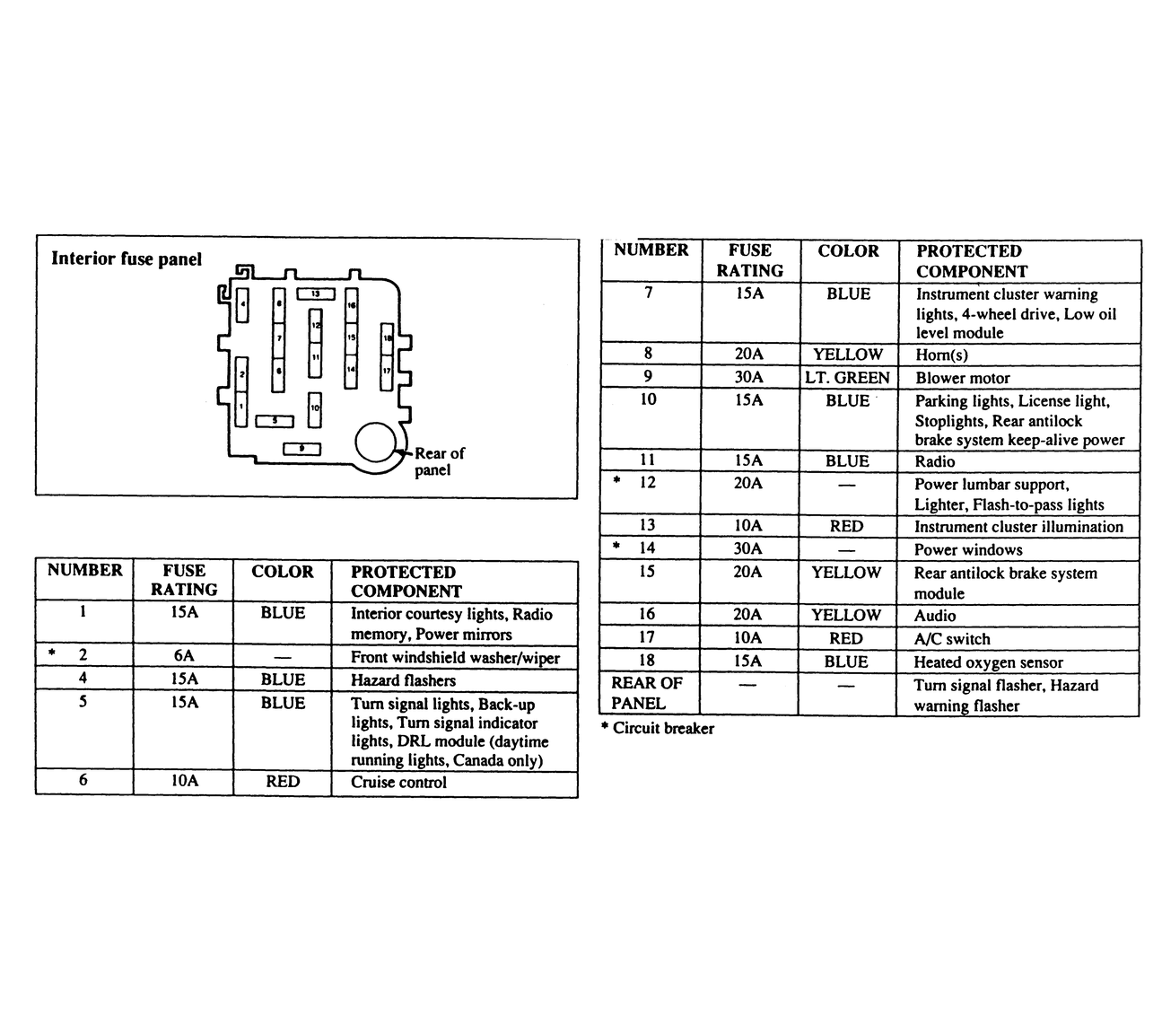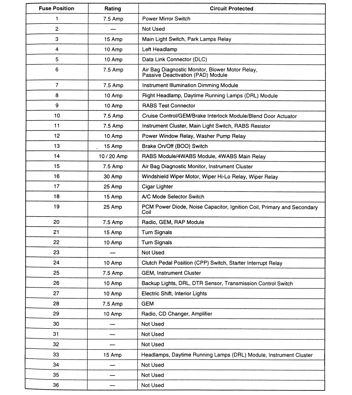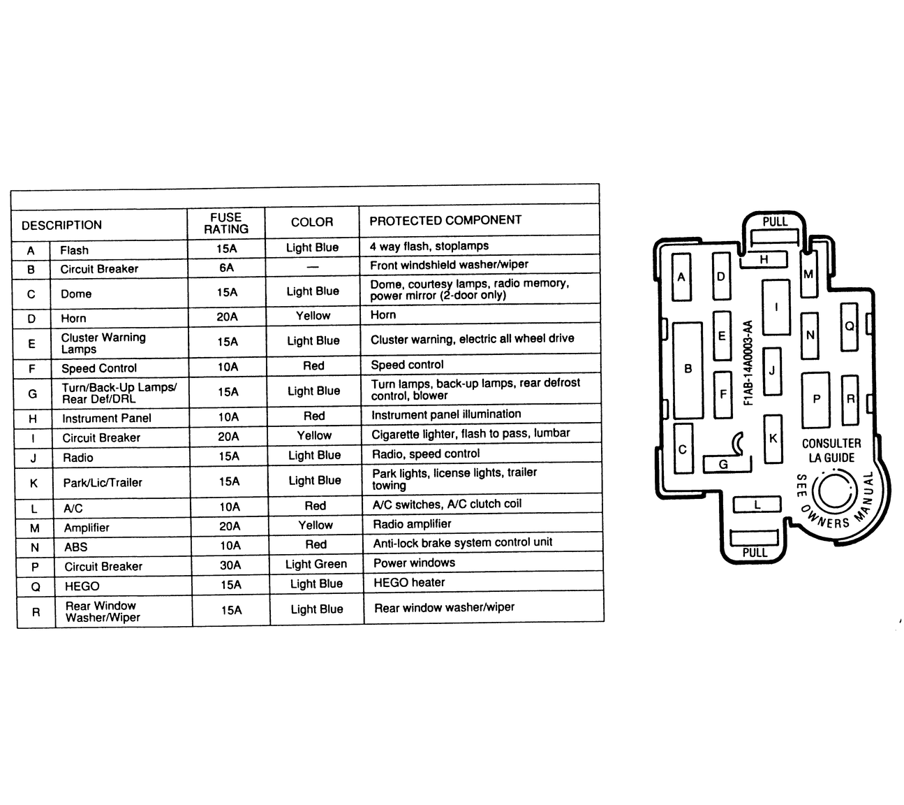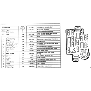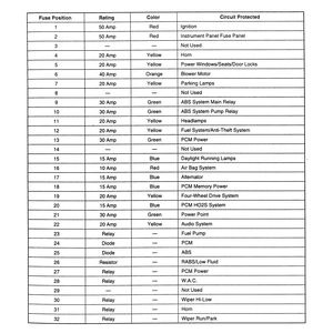 | Fig. 3: Fuse panel and identification chart for 1994–95 MPV |