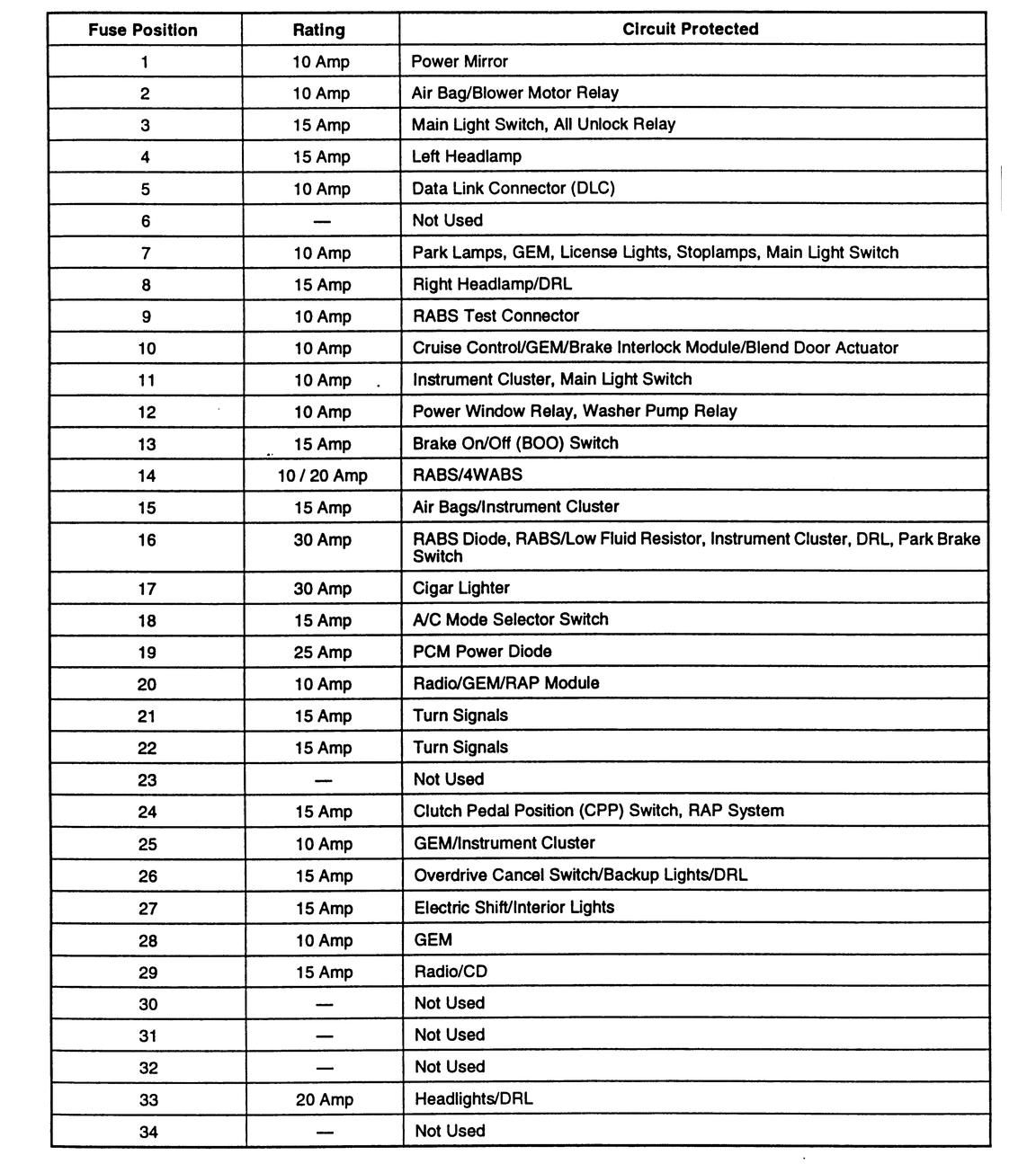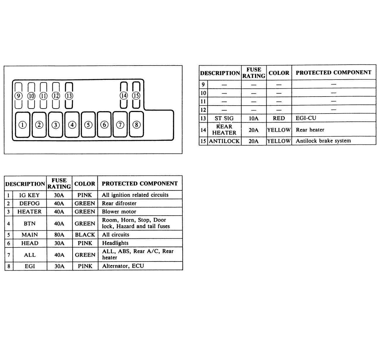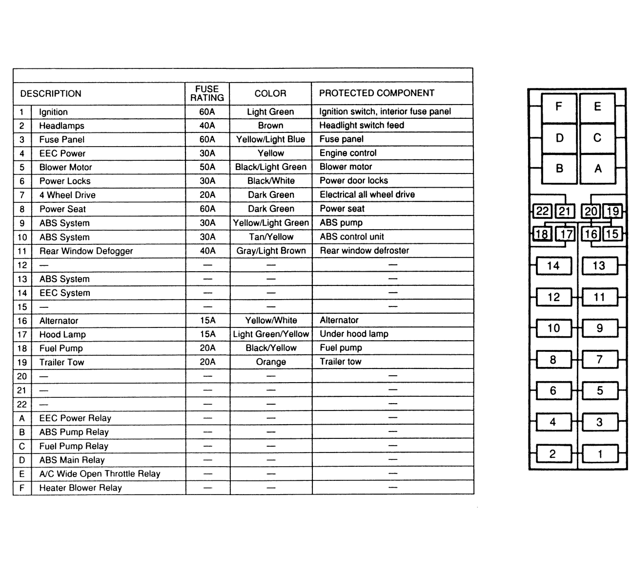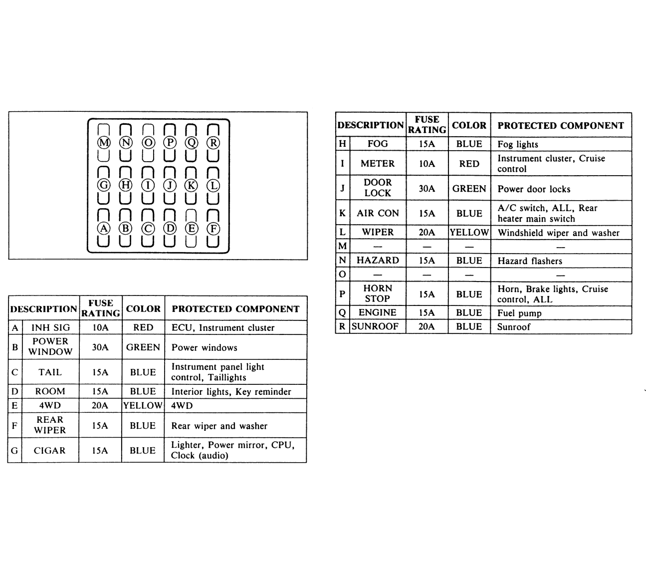 | Fig. 3: Fuse panel and identification chart for 1994–95 MPV |