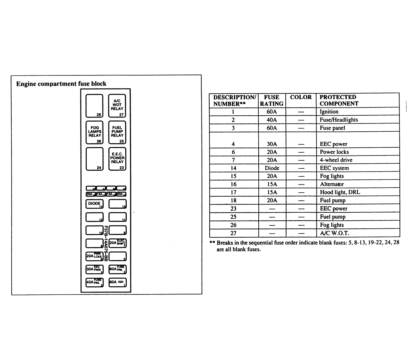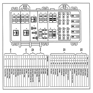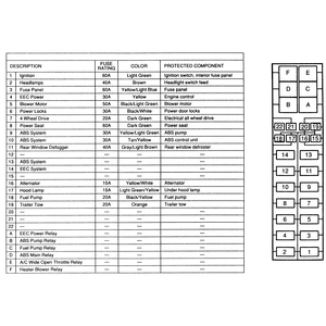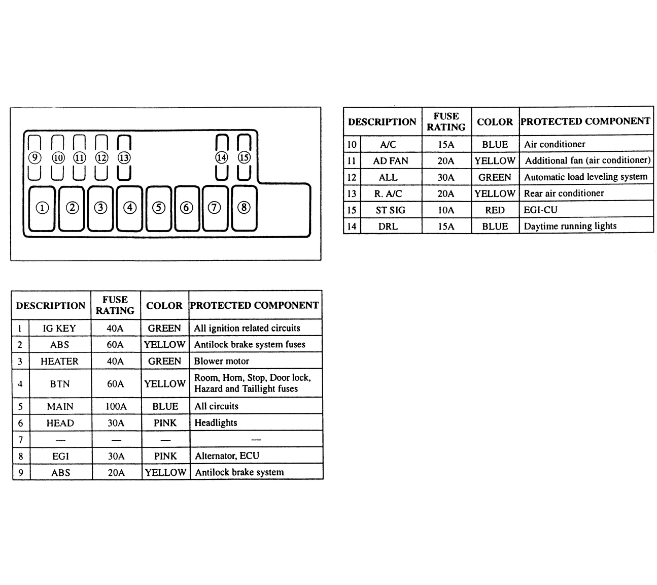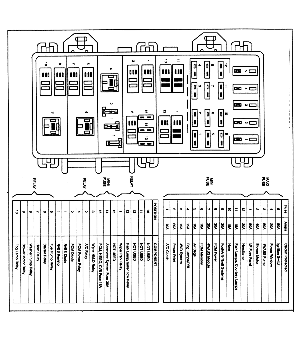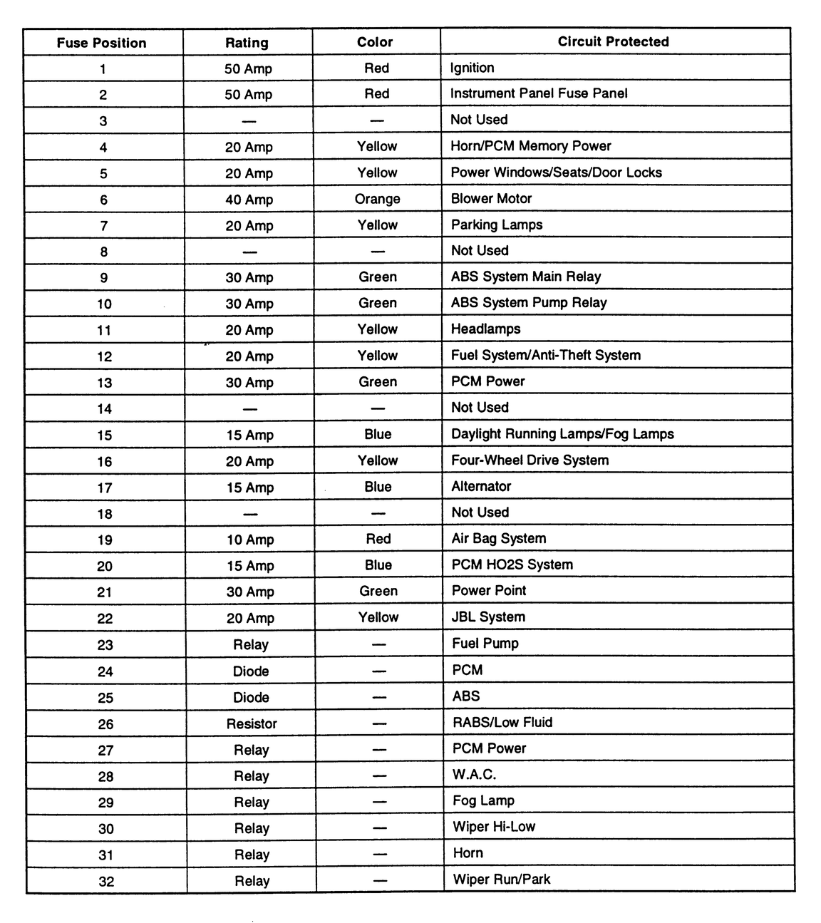 | Fig. 2: Underhood power distribution box and identification chart for the Navajo |