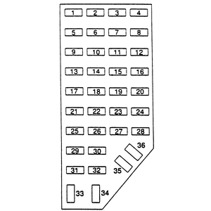 | Fig. 5: Fuse panel and identification chart for 1996–98 MPV |