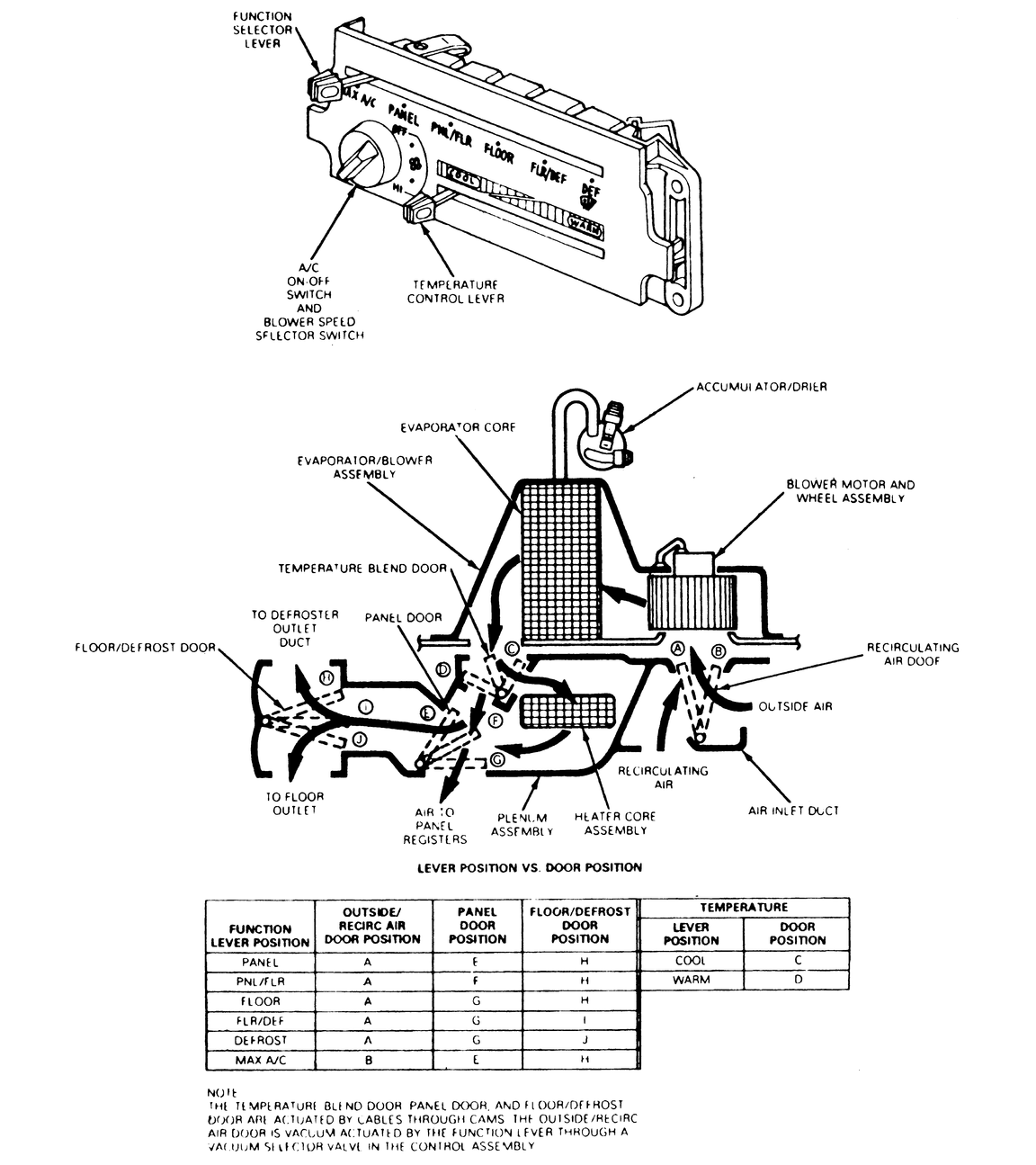 Fig. 4: Typical example of the control head and the air flow paths in the plenum assembly (with A/C)