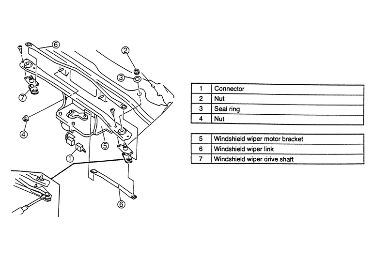 | Fig. 2: Exploded view of the windshield wiper linkage assembly |