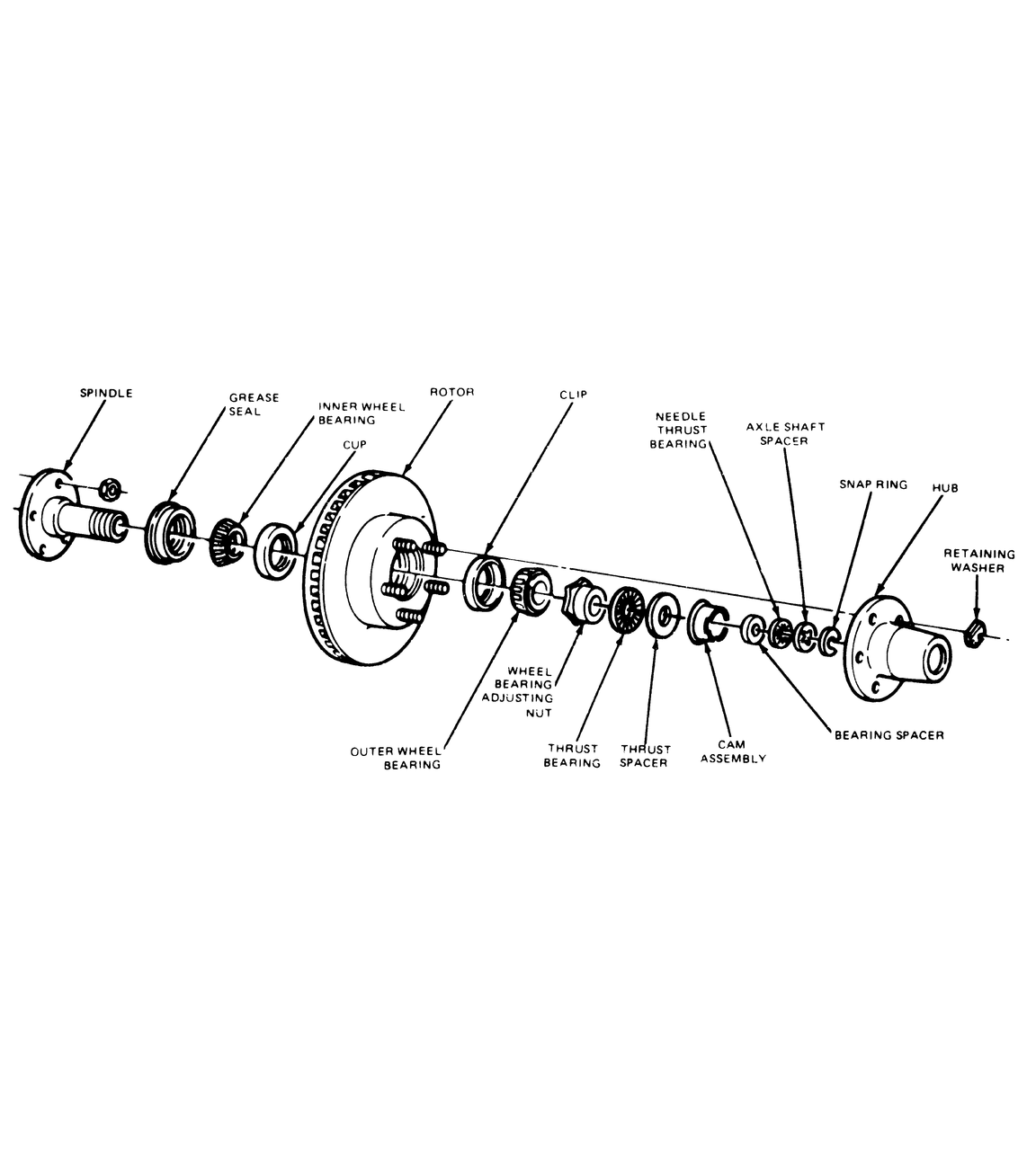 | Fig. 1: Exploded view of the automatic locking hubs and related components |