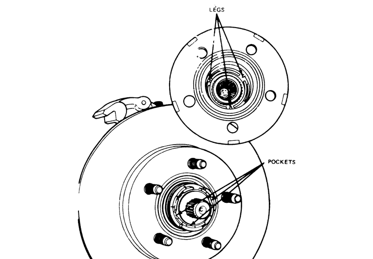| Fig. 3: When installing the outer hub cover, ensure that the legs on the cover seat in the pockets on the locking cam |