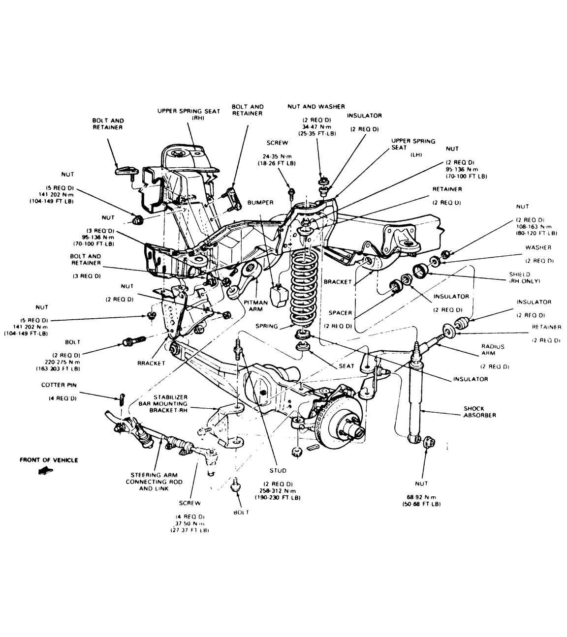 160–220 ft. lbs. (217–298 Nm). Install the bolts in the front