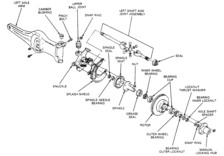 | Fig. 1: Exploded view of the left-hand axle shaft assembly