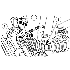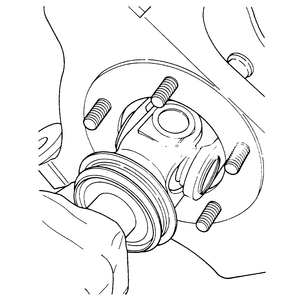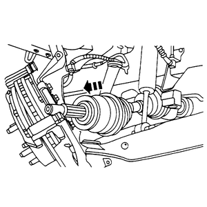 - Remove the outboard CV-joint from the wheel hub by slightly rotating the
