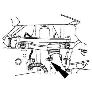- Remove the upper ball joint-to-steering knuckle retaining bolt and separate