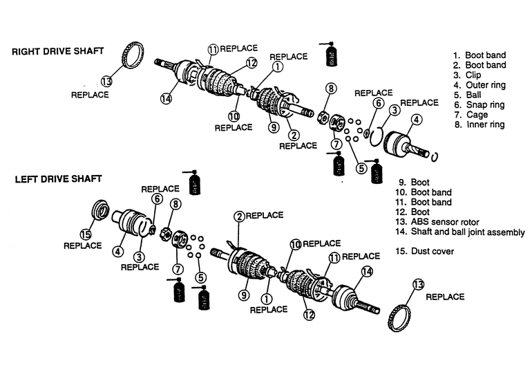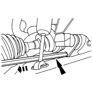 - Pull the right-hand axle shaft out of the axle joint boot and stub shaft