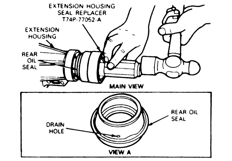 the extension housing using tool T74P-77052-A. Check to ensure that the oil