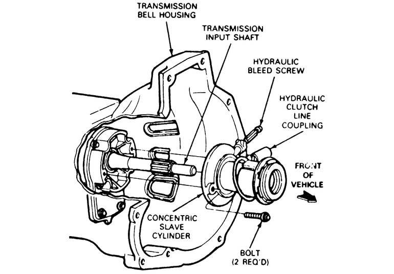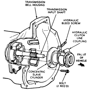 - Remove the slave cylinder-to-transmission retaining bolts.
