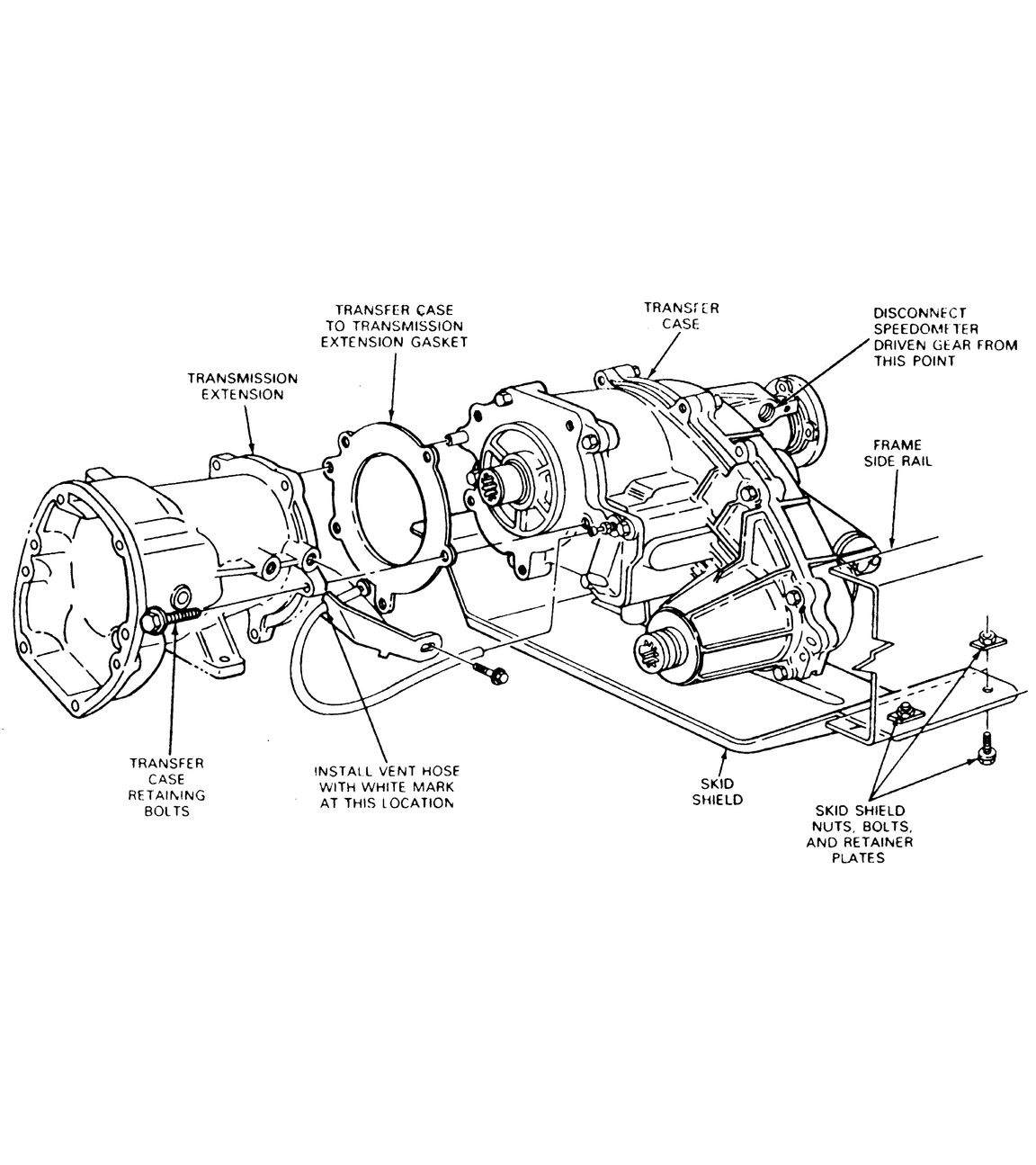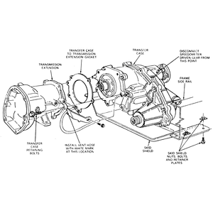 - Remove the mounting bolts retaining the transfer case to the transmission.