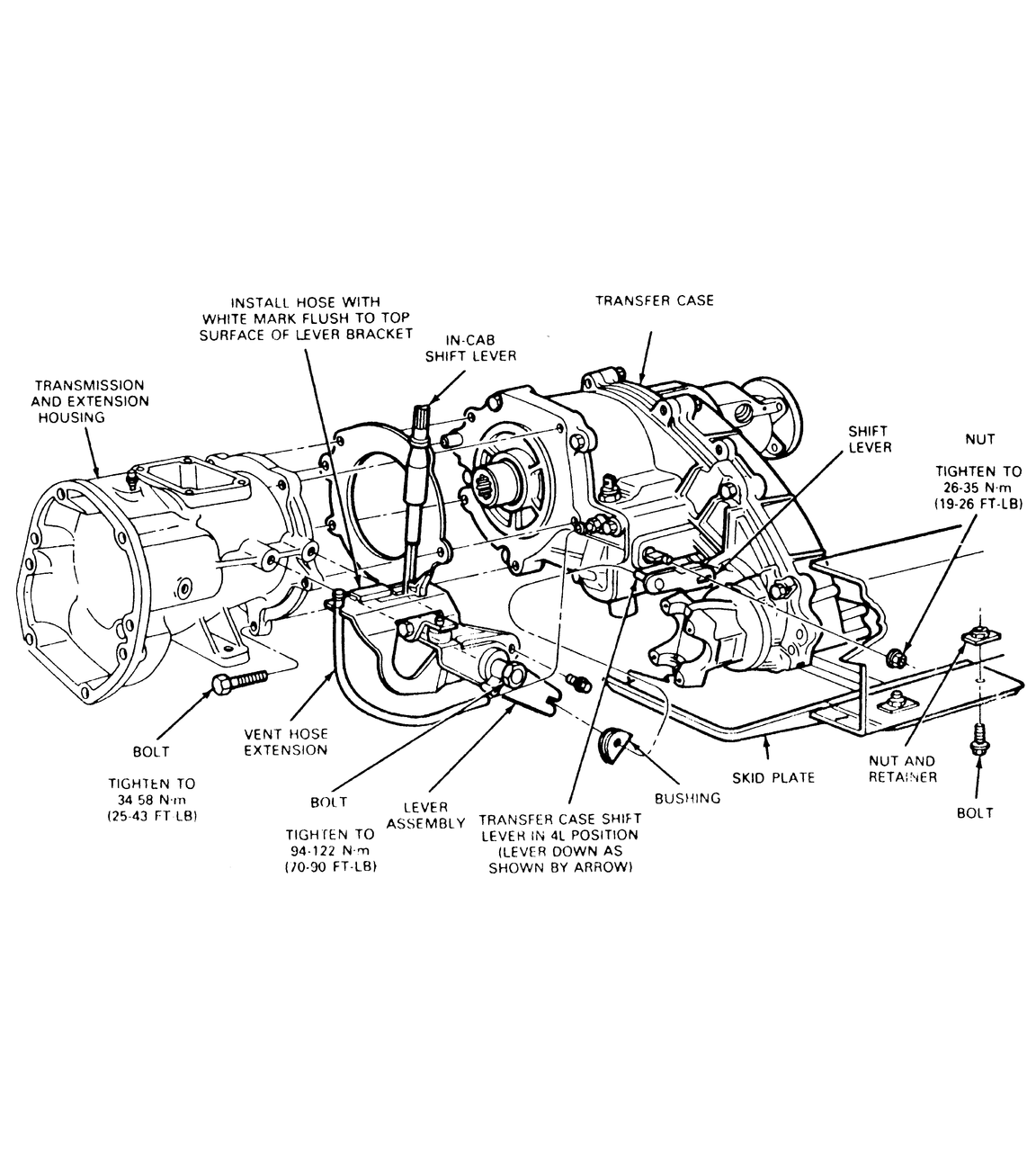 - Raise the transfer case with a suitable transmission jack or equivalent,