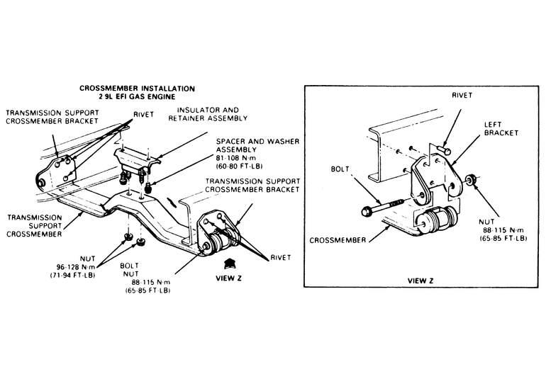 Raise the engine and install the rear crossmember, insulator and damper