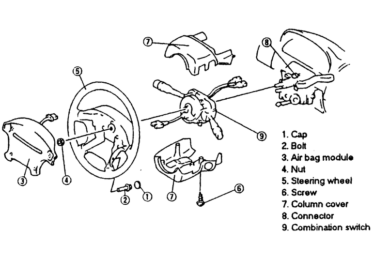 to the steering wheel. Disconnect the air bag connector and remove the air