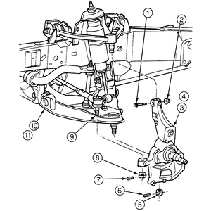 - Install ball joint to the knuckle assembly. Torque the ball joint nut to
