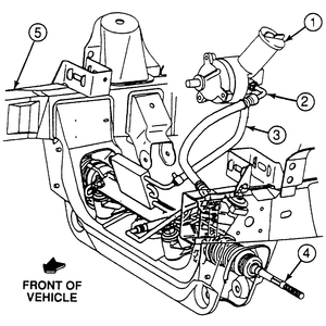 - Remove the rack and pinion assembly mounting bracket bolts and the front