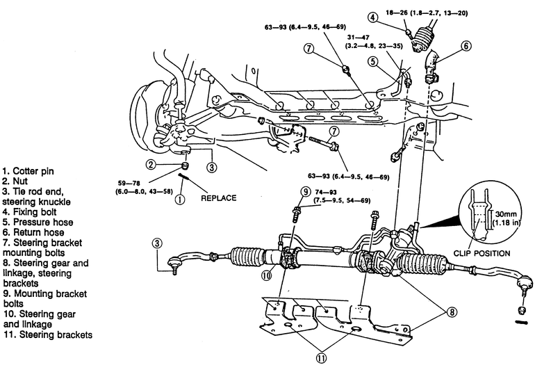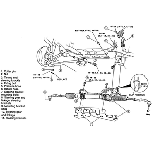 - Remove the steering bracket mounting bolts and remove the rack and pinion