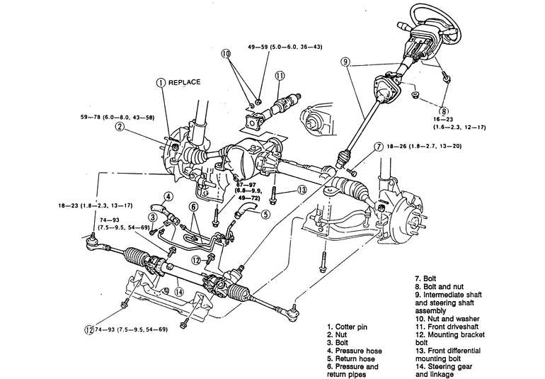 the nuts to 43–58 ft. lbs. (59–78 Nm) and install new cotter pins.