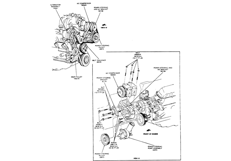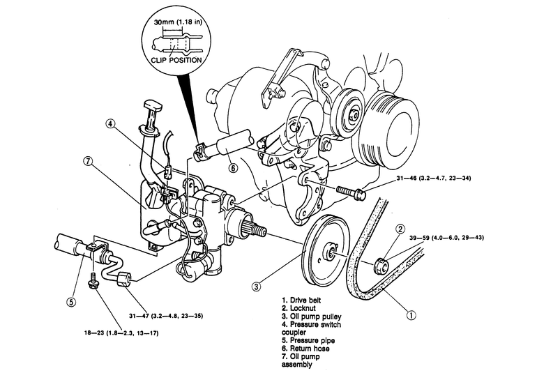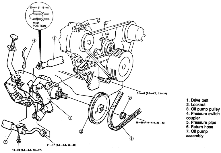 | Fig. 1: Exploded view of the power steering pump used on the 3.0L engine |