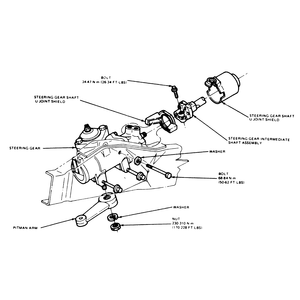 Work the steering gear free of the flex coupling. Remove the steering gear