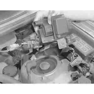 Fig. 5: Remove the igniter, ignition coil and mounting bracket assembly from the top of the strut tower to access the upper strut mounting nuts