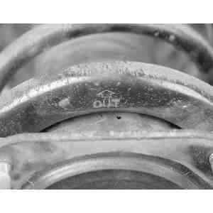 Fig. 8: Note the marking to indicate how the strut assembly is installed into the vehicle (OUT w/arrow)