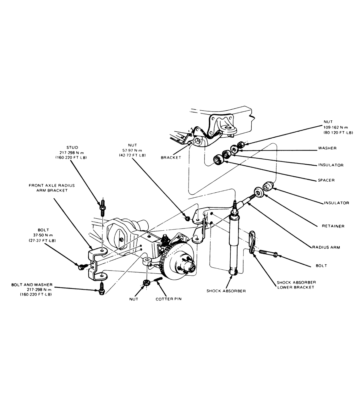 | Fig. 1: Radius rod and related components — rear wheel drive |
