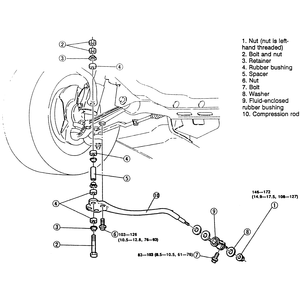 5. Unbolt the compression rod fluid-filled bushing and remove the bushing and washers.