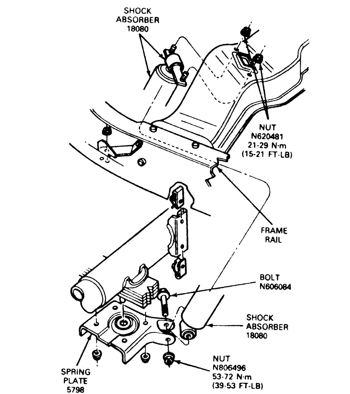 | Fig. 1: Rear shock absorber and related parts — B Series Pick-up |