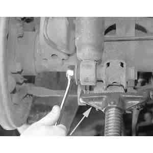 | Fig. 6: Pull out the lower shock absorber-to-rear axle