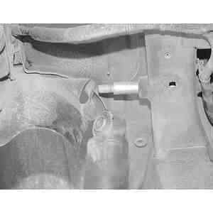 | Fig. 7: The top rear shock absorber mounting nut is accessible