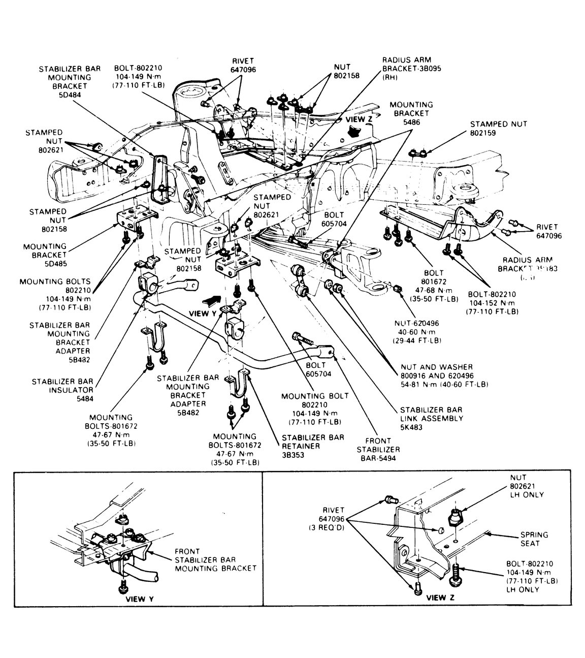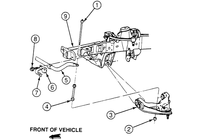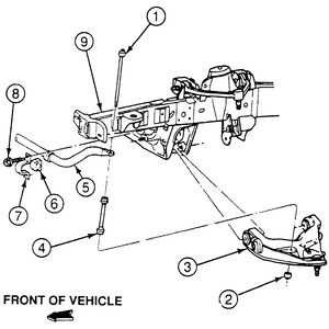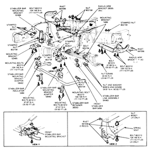 | Fig. 2: Exploded view of the Mountaineer and 1995–97 Explorer stabilizer bar mounting |