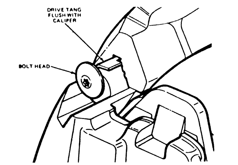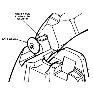 | Fig. 12: Ensure that the tang is driven flush to the caliper mount |