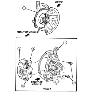 NOTE: Mazda recommends that new caliper pins be installed whenever the caliper is removed from the steering knuckle.