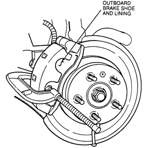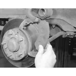 | Fig. 6: Remove the outer brake pad from the caliper
